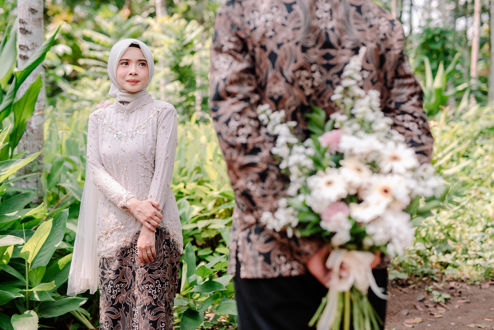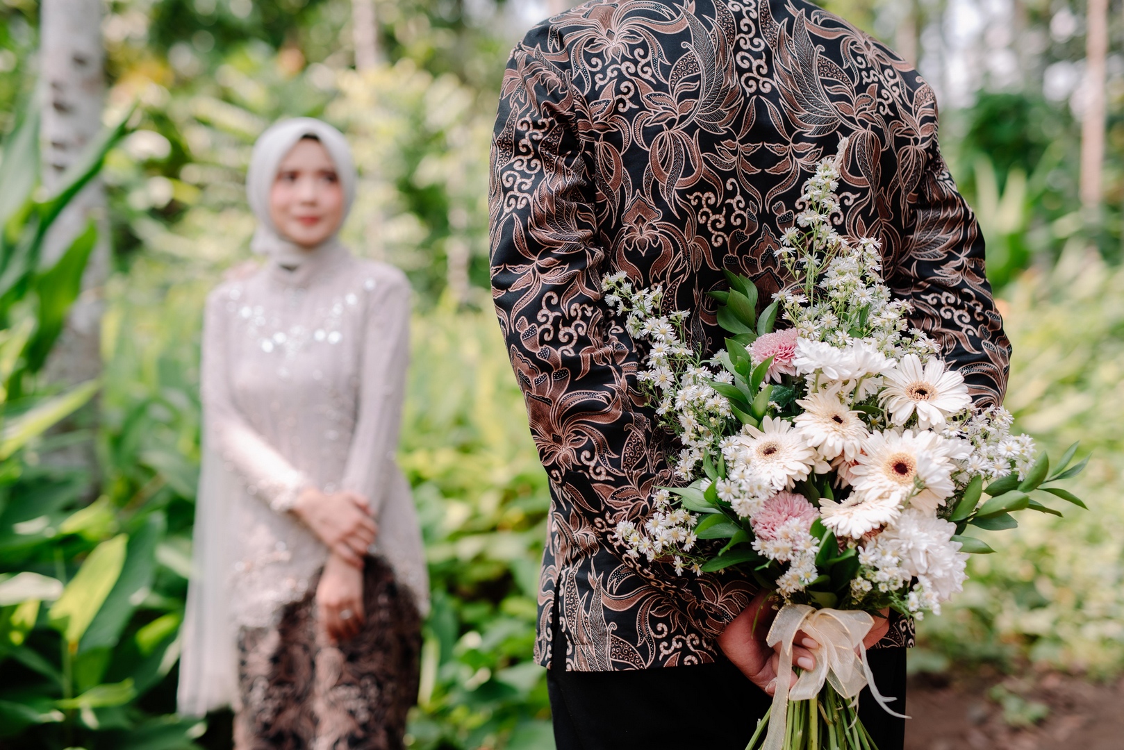 “Semoga Allah SWT menyempurnakan kebahagiaan kalian dan menjadikan pernikahan kalian sebagai ibadah kepada-Nya.” “Barakallahu lakum wa baraka alaikum.” (Mudah-mudahan Allah memberi kalian keberkahan dan melimpahkan atas kalian keberkahan) dan (Semoga Allah memberkahimu dalam segala hal (yang baik) dan mempersatukan kamu berdua dalam kebaikan, Aamiin Ya Robbal'alamin